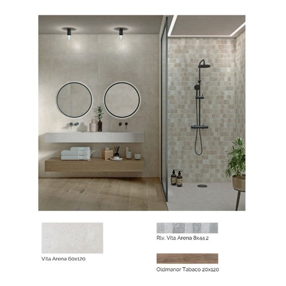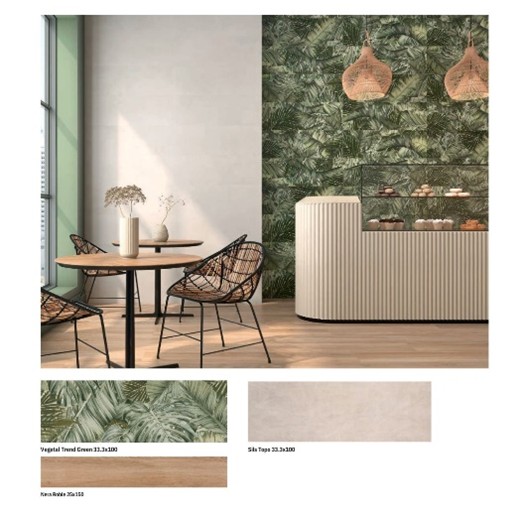 Este revestimiento destaca por su formato 29,5 x 59,5 R y su apariencia de listón, con un acabado en tonos neutros que se adaptan perfectamente a cualquier ambiente interior. Su diseño juega con diferentes intensidades dentro de cada pieza, generando una textura única y una sensación de movimiento muy natural.